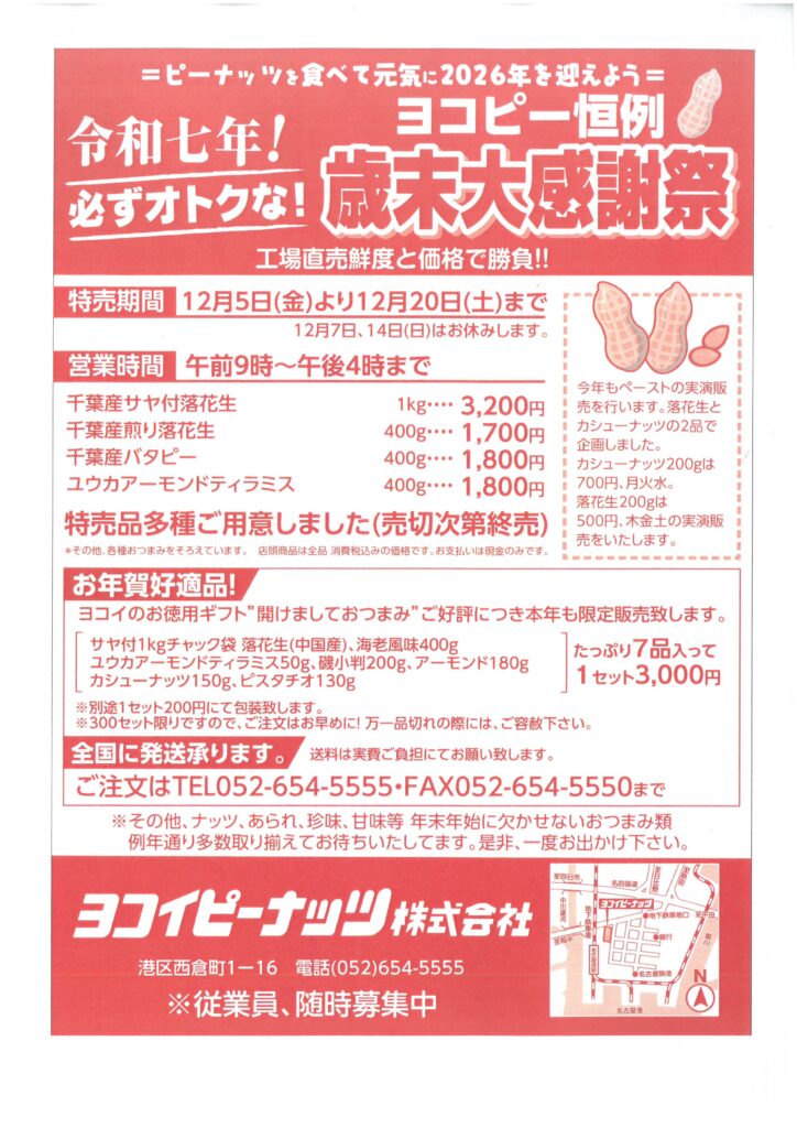 年末大感謝祭はヨコイピーナッツ駐車場スペースにて