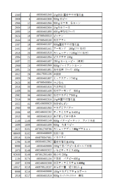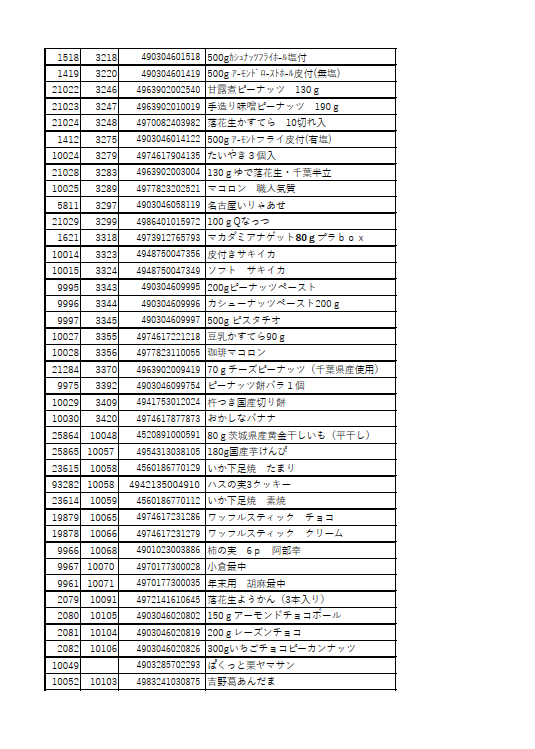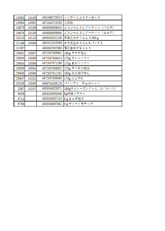 学校給食採用品や、喫茶店のおつまみなどの個包装お菓子